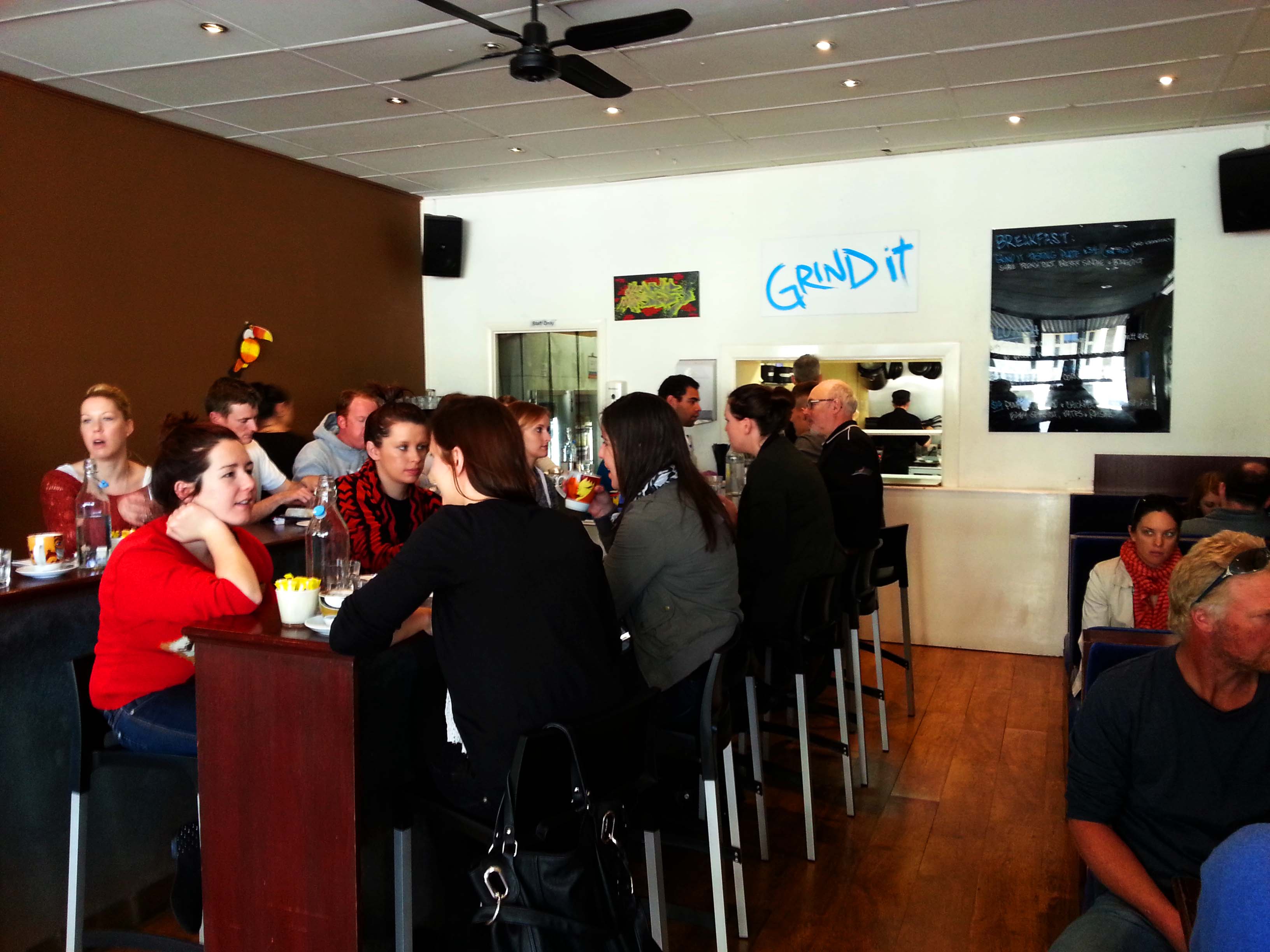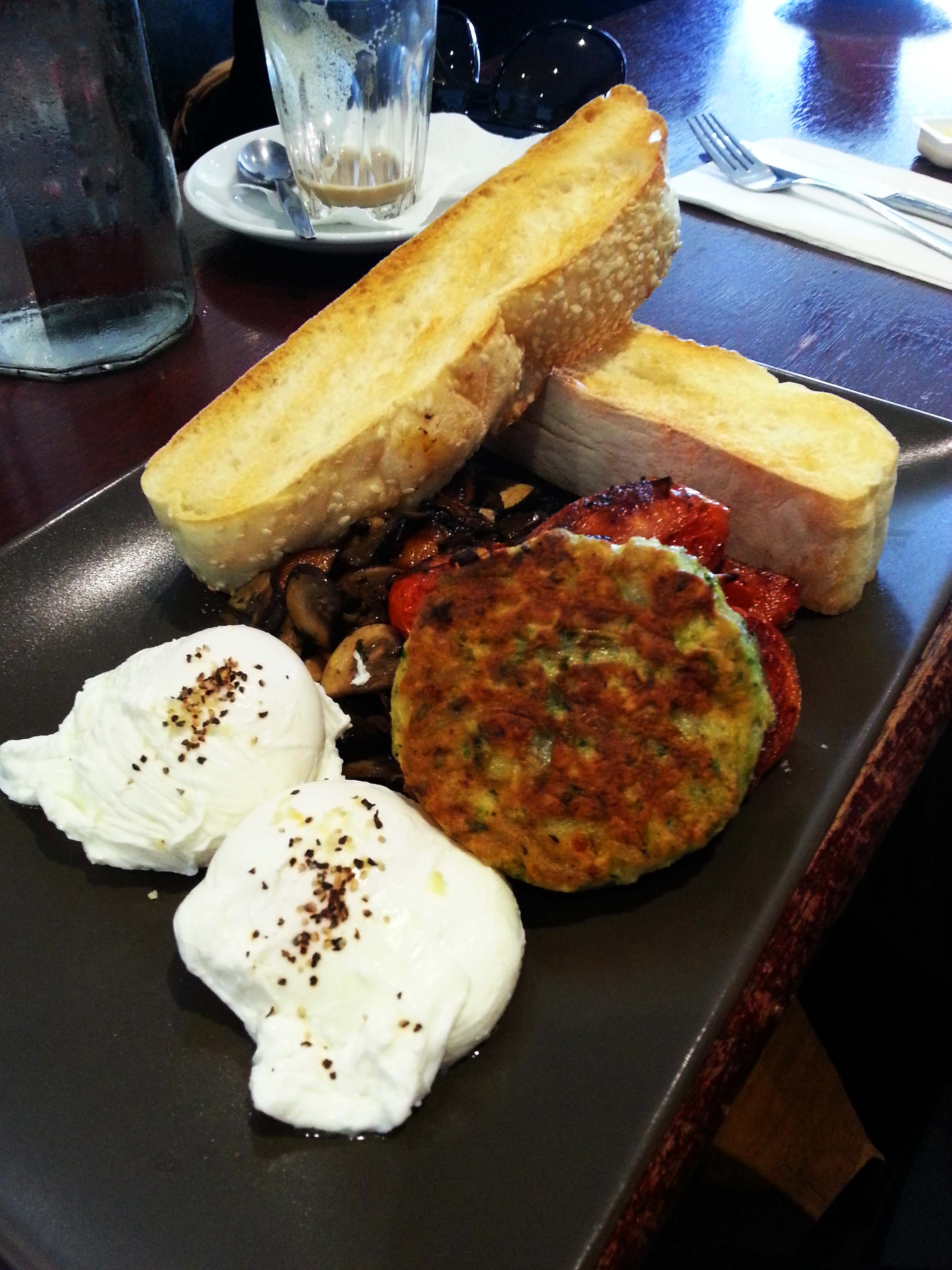 Grind it is a popular little brunch spot upon in Glenelg. Exercising a no-bookings policy we waited patiently in the middle of this eatery, side-stepping as the busy waiters zoomed past with plates of tantalising food.  While we stood sipping our coffees and perusing the menu, we took in our surroundings.  Grind it has an unusual set up with two long bars – one of which only has seats on one side (so you don’t have to look at your dining companion while eating).  This also makes for less sociable interaction.  Surprisingly, being in Grind It made you feel like you were in a backpackers.  Lucky for us we weren’t.